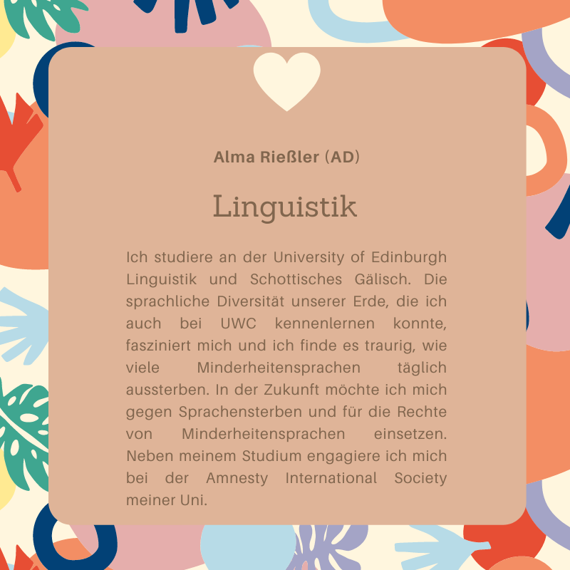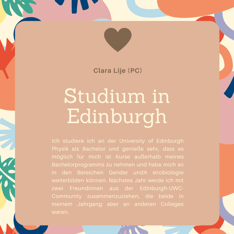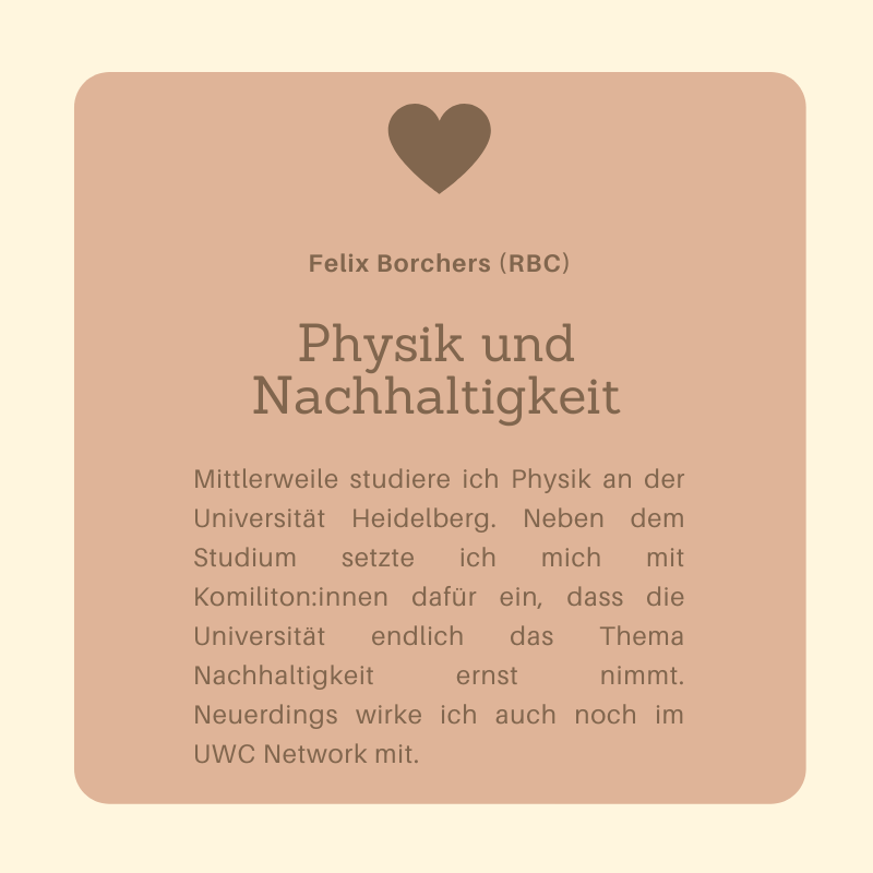 Was ist eigentlich aus dem Jahrgang 2017-19 geworden? In der Kategorie – Was macht eigentlich der Jahrgang… – könnt ihr nachlesen, welche Wege die Absolvent*innen nach ihrer Zeit am UWC eingeschlagen haben.